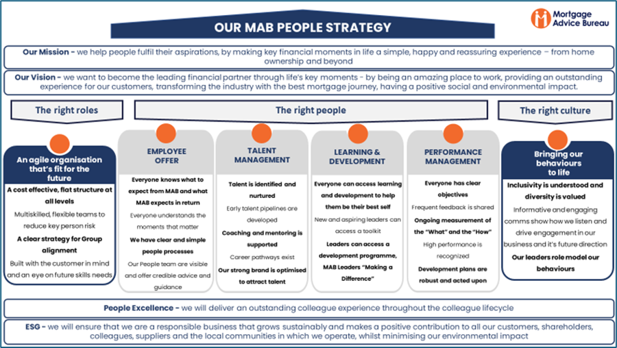 Our colleagues are integral to our success, and at MAB, we believe that an engaged and balanced workforce drives better outcomes for everyone. We recognise that our colleagues are vital in delivering our mission for our customers, and by supporting and engaging them we will drive strong and sustainable growth. Our ‘People Strategy’, which was launched in 2024, is a key enabler in delivering our overall strategy at MAB. We are committed to building an agile, digital-first organisation that is fit for the future and has the right people, in the right roles, at the right time, guided by key principles: